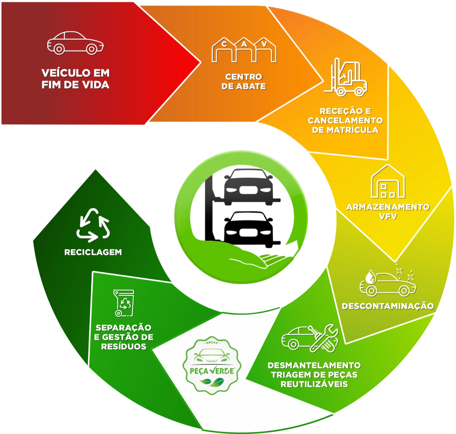 A certificação “Peça Verde®”, é desenvolvida pela Associação Nacional dos Centros de Abate de Veículos (ANCAV) em parceria com a Empresa Internacional de Certificação, S.A. (EIC) e, tem por objetivo estabelecer os critérios legais, organizacionais e operacionais a que um Centro de Abate de Veículos (CAV) tem de obedecer para ser certificado.